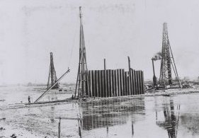 | 護岸基礎工風景 | 松重閘門タワー建設風景 | 松重閘門建設風景(昭和6年7月25日供用開始、1931年) |